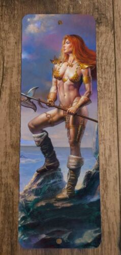 Fantasy Barbarian Viking Girl With Axe 4x12 Metal Wall Sign Poster
