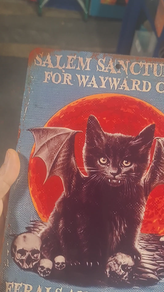 Salem Sanctuary for Wayward Cats Ferals Familiars 8x12 Metal Wall Animal Sign
