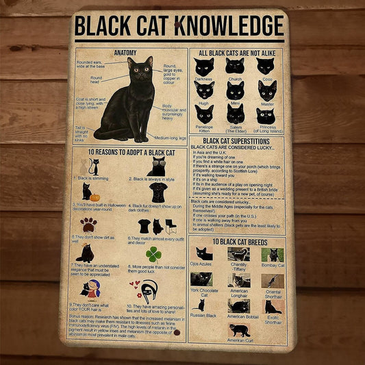Black Cat Knowledge 8x12 Metal Wall Animal Sign