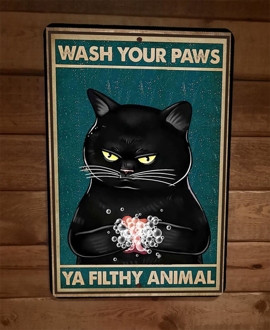 Black Cat Wash Your Paws Ya Filthy Animal 8x12 Metal Wall Sign Animal Poster