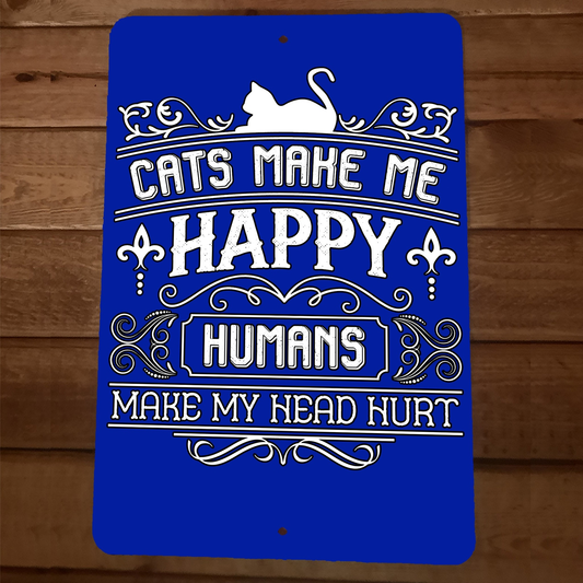 Cats Make Me Happy Humans Make My Head Hurt 8x12 Metal Wall Animal Sign