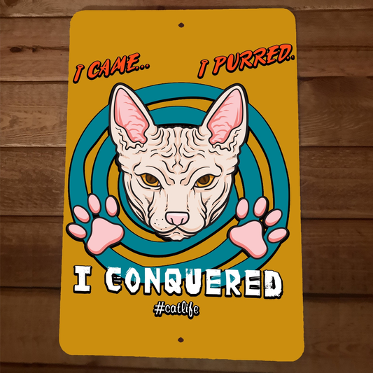 I Came I Purred I Conquered 8x12 Metal Wall Cat Animal Sign