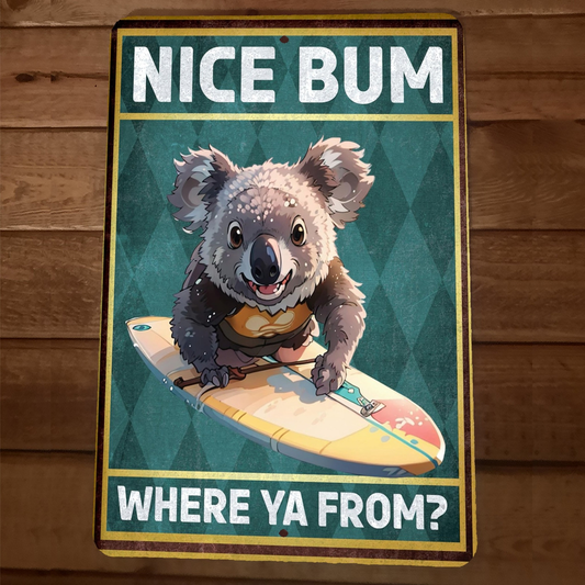 Nice Bum Where Ya From Koala Bear 8x12 Funny Bathroom Metal Wall Sign