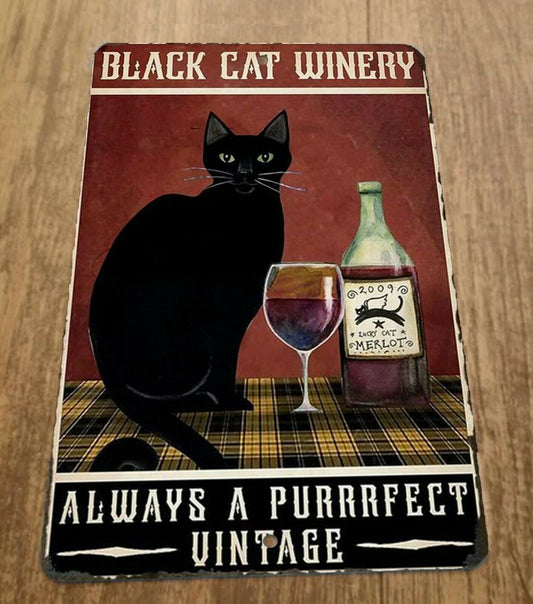 Black Cat Winery Always Purrrfect Vintage 8x12 Metal Wall Animal Bar Sign