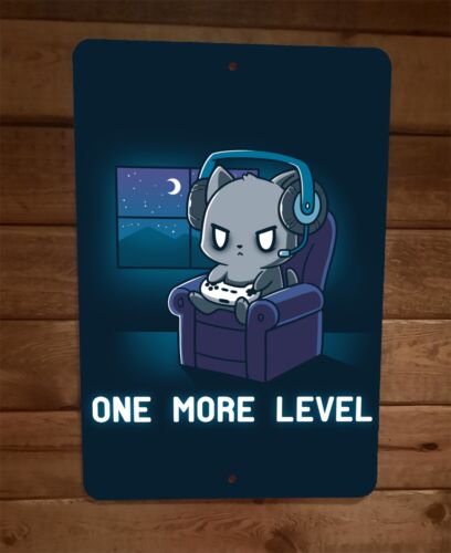One More Level Cat Video Gamer 8x12 Metal Wall Sign Poster