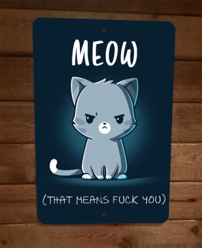 Meow That Means Fuck You Cat 8x12 Metal Wall Sign Poster