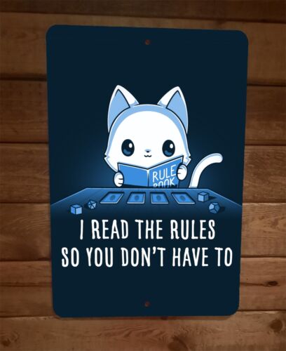 I Read The Rules So You Dont Have To Cat Gamer 8x12 Metal Wall Sign Poster