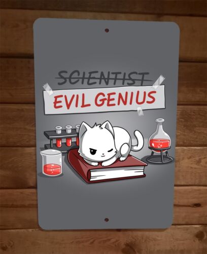 Evil Genius Cat Scientist 8x12 Metal Wall Sign Poster