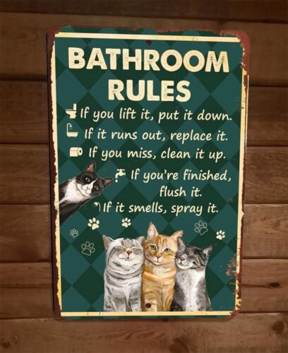 Cats Bathroom Rules 8x12 Metal Wall Sign Animal Poster