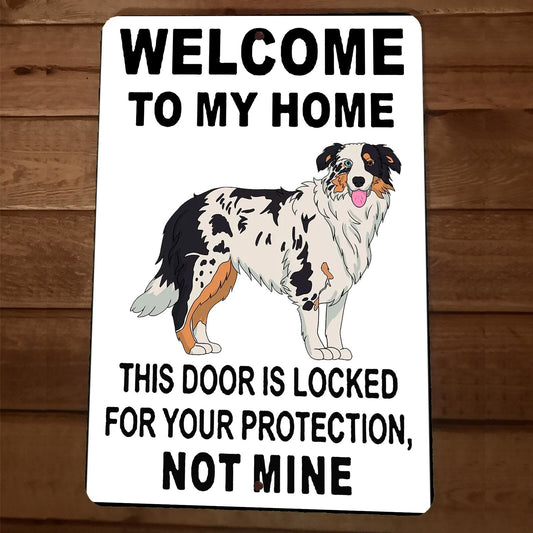 Door is Locked for Your Protection Australian Shepherd Dog 8x12 Wall Animal Sign