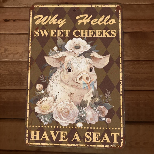 Well Hello There Sweet Cheeks Have a Seat Pig 8x12 Metal Wall Animal Sign