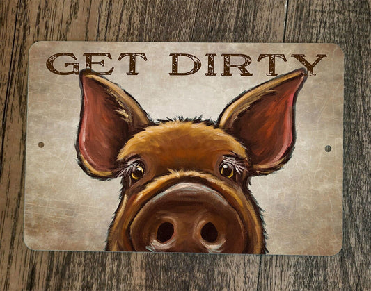 Get Dirty Pig 8x12 Metal Wall Sign Animal Poster