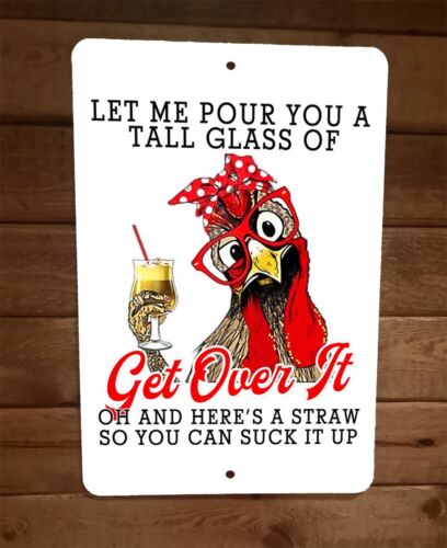 Tall Glass of Get Over It Chicken 8x12 Metal Wall Sign Animal Poster