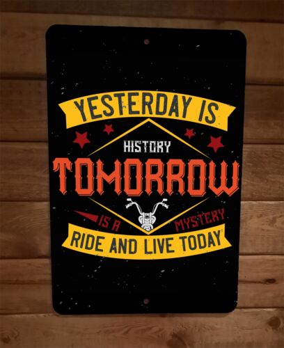 Yesterday Is History Ride and Live Today 8x12 Metal Wall Motorcycle Biker Sign