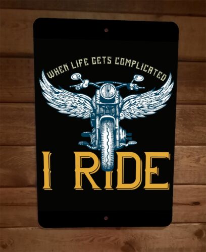 When Life Gets Complicated I Ride 8x12 Metal Wall Motorcycle Biker Sign Poster