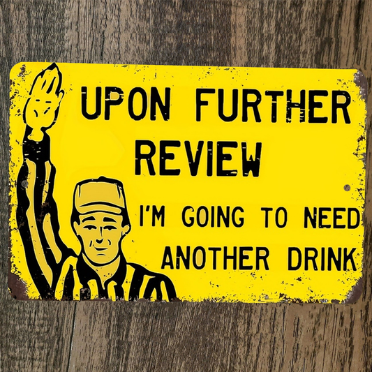 Upon Further Review I Need Another Drink 8x12 Metal Wall Bar Room Sign