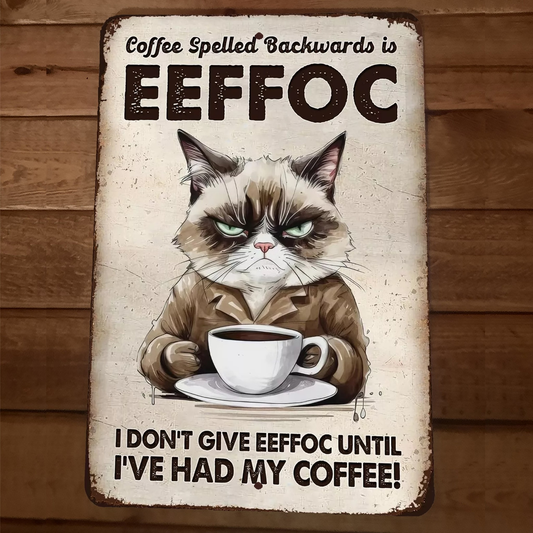 Coffee Spelled Backwards is EEFFOC Grumpy Cat 8x12 Metal Wall Sign