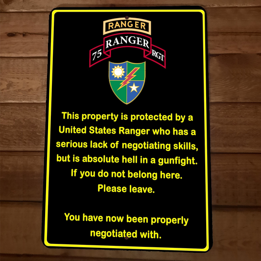 Property Protected by Army Ranger 75th Regiment 8x12 Metal Wall Military Sign