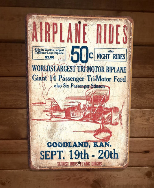Vintage Look 50 Cent Airplane Rides Goodland KA 8x12 Metal Wall Sign Poster