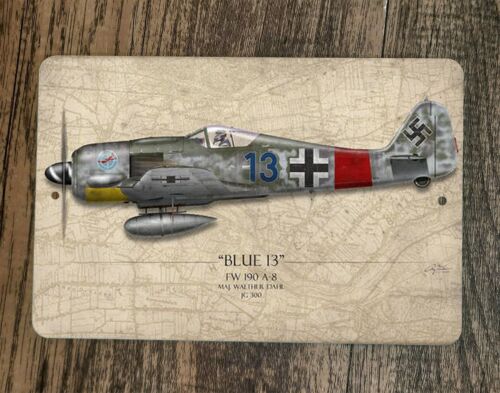 Blue 13 FW 190 A-8 Military Jet Plane 8x12 Metal Wall Sign Poster
