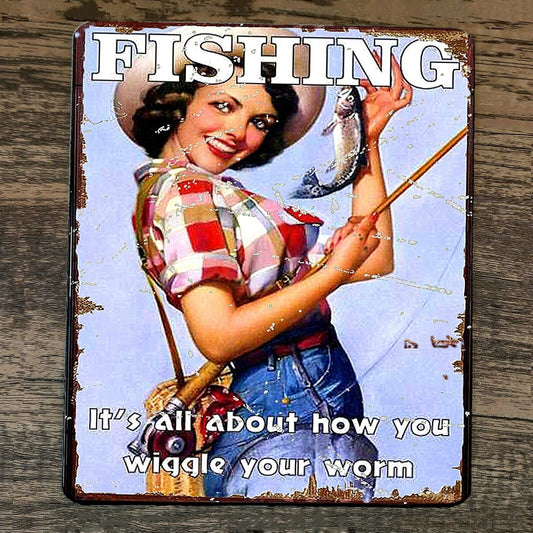 Fishing Its All About How You Wiggle Your Worm 8x12 Metal Wall Sign Garage Poster Great Outdoors