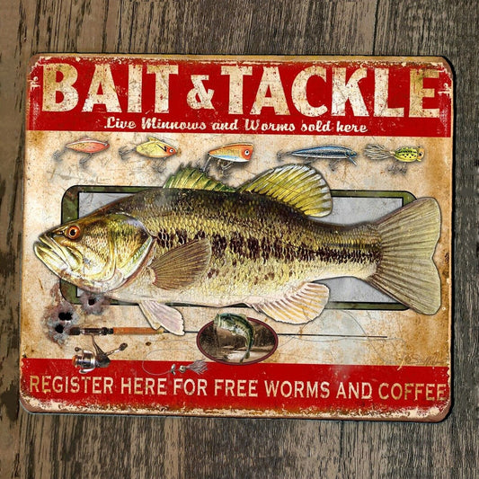 Fishing Purveyors Since 1895 Lunkers Bait and Tackle 8x12 Metal Wall Sign Poster