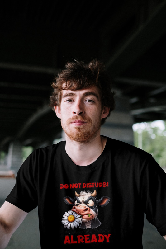 Do Not Disturb Im Disturbed Enough Already Cow Mens T Shirt