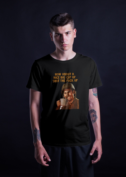 How About a Nice Big Cup of Shut the F**k Up Soldier Mens T Shirt Mens T Shirt