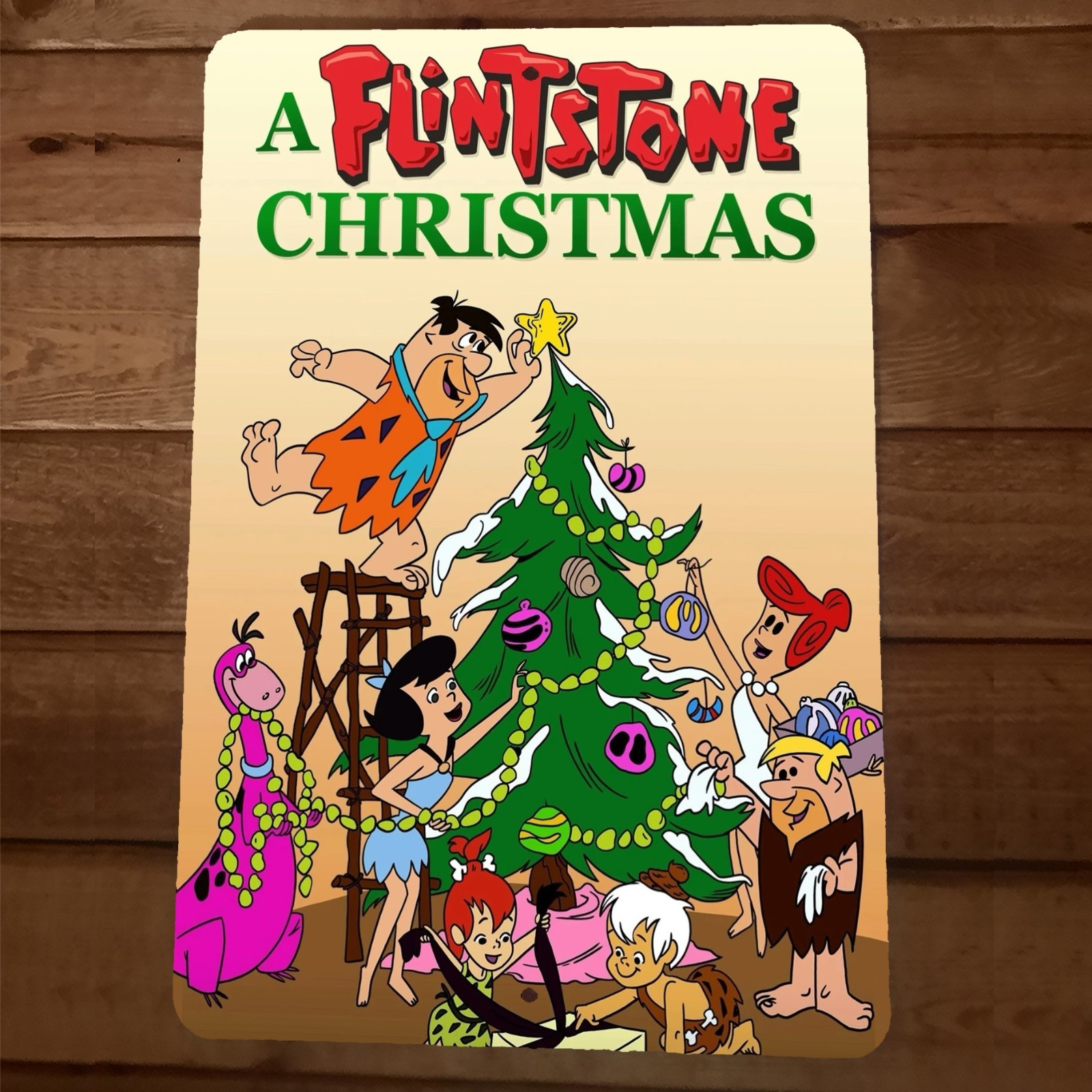 Hanna Barbera a Flintstone Christmas Artwork 8x12 Wall Sign #2