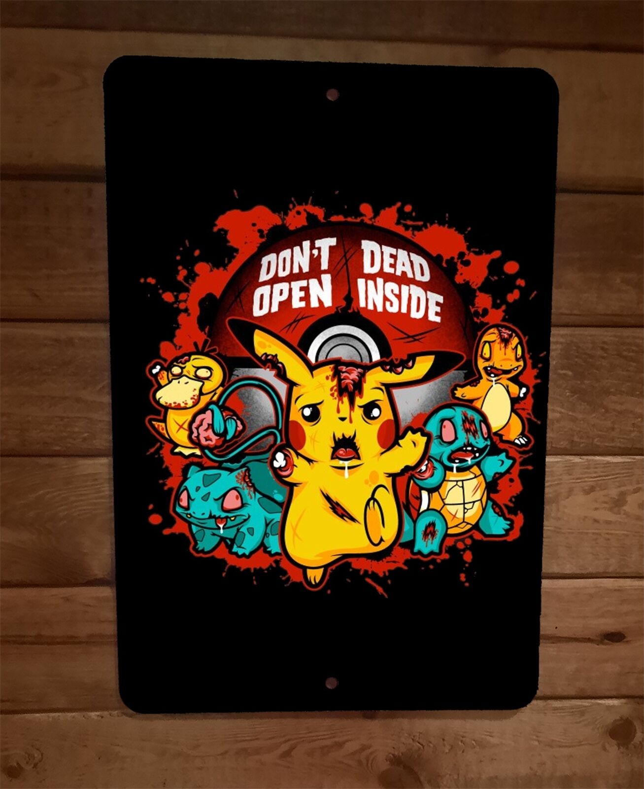 Zombie Pocket Monsters Don't Open the Pokeball Dead Inside 8x12 Metal Wall Sign